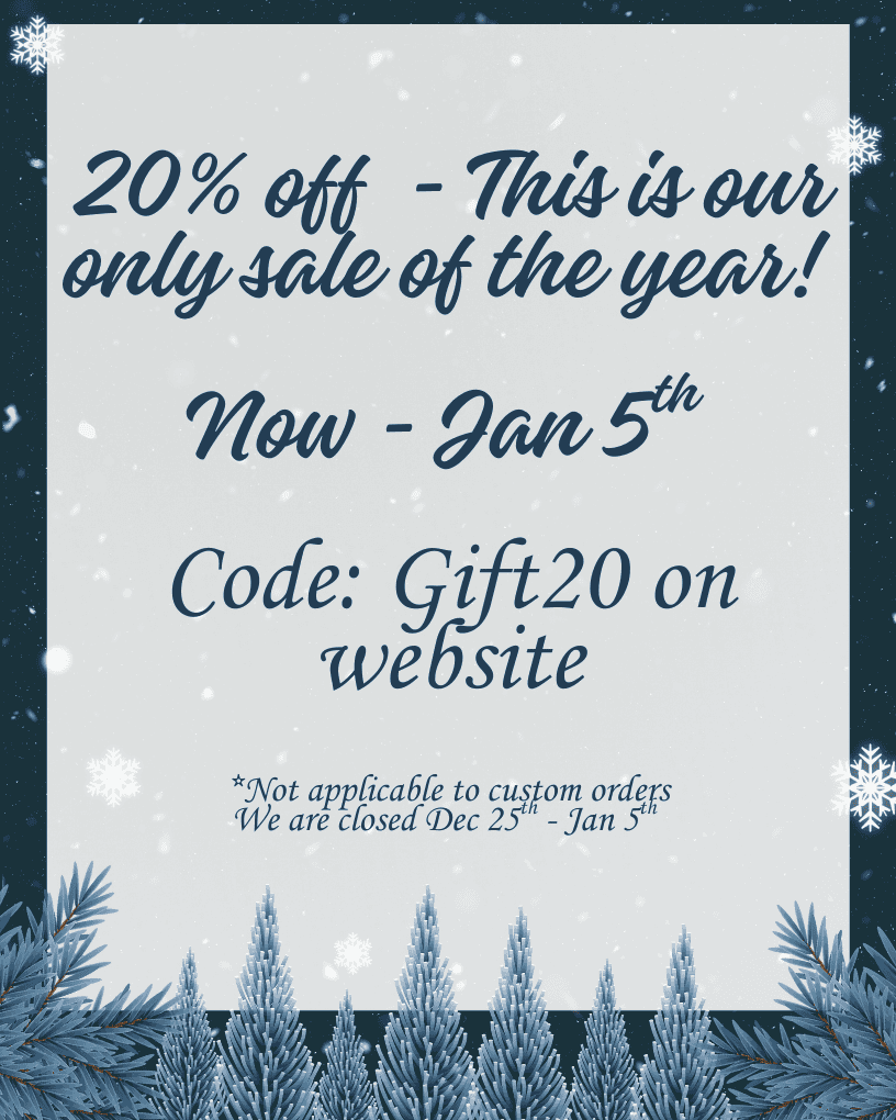 Only sale of the year! 20% off on the website. Use code “Gift20” when checking out! Post published:December 16, 2025 Post comments:0 Comments Read more articles Previous PostHappy Thanksgiving! Leave a Reply Cancel replyYou must be logged in to post a comment. You Might Also Like Shop Needs Cleaning January 29, 2011 The Last of My Tammy Rae Glass November 1, 2011 Dust Collector April 27, 2011 Please Share This Share this content Opens in a new window Opens in a new window Opens in a new window Opens in a new window Opens in a new window Opens in a new window Opens in a new window Opens in a new window Opens in a new window Opens in a new window