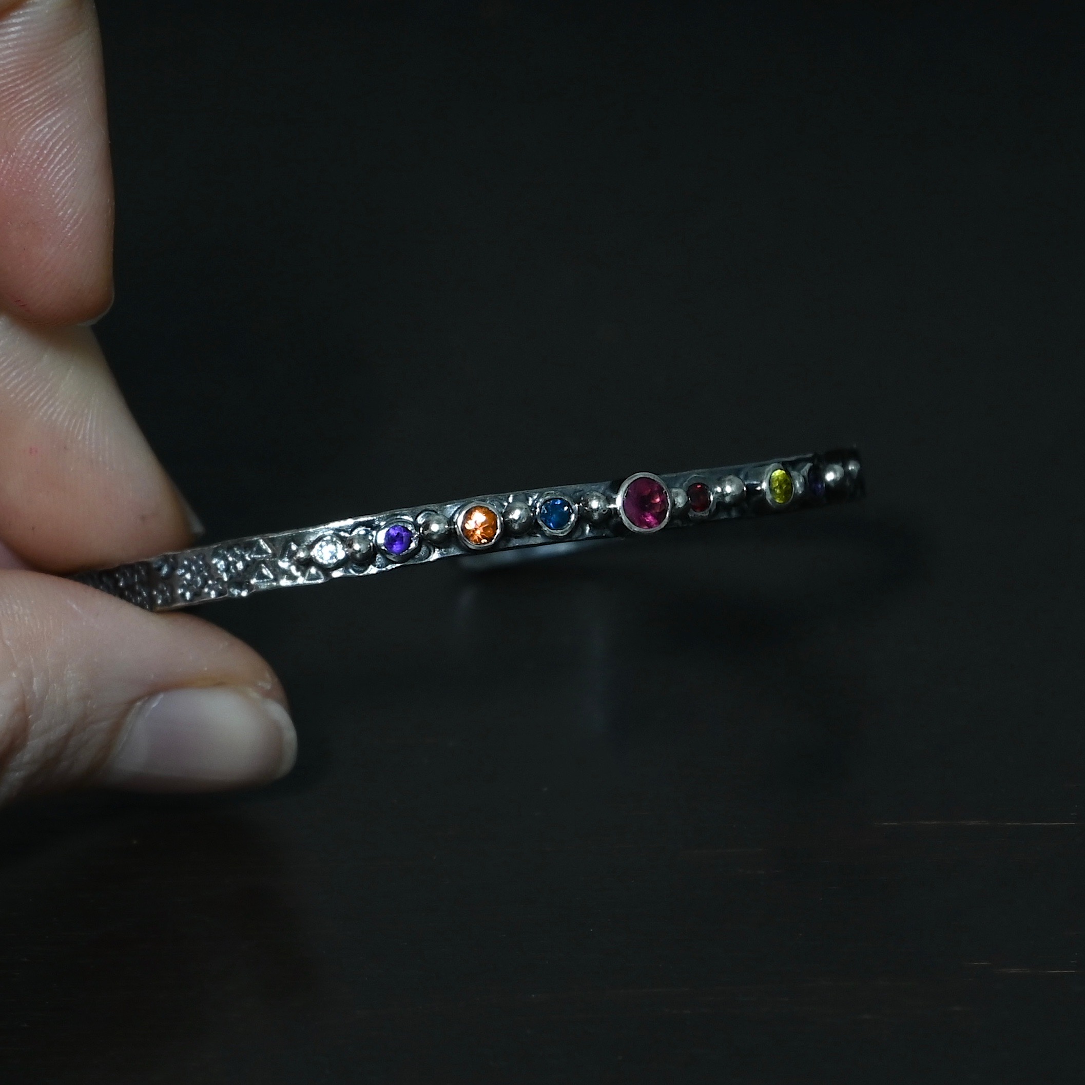 - 9 Stones (left to right – diamond, sapphire, sapphire, sapphire, ruby, sapphire, sapphire, sapphire, & diamond)