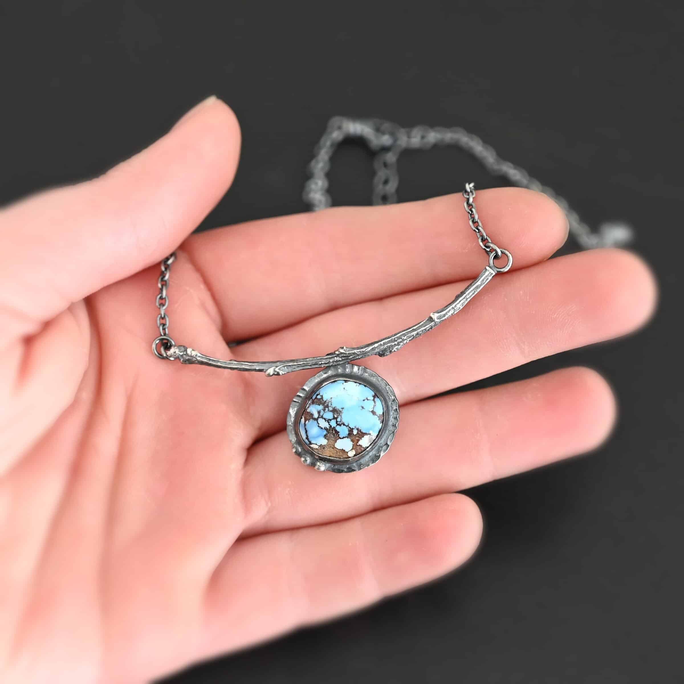 - Comes on handmade sterling silver chain 16-19″ long