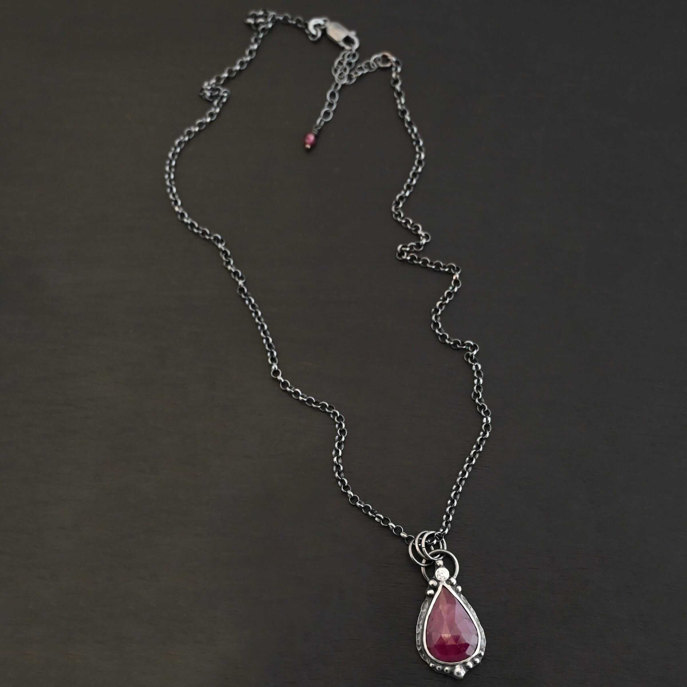 - Comes on handmade sterling silver chain 16-19″ long