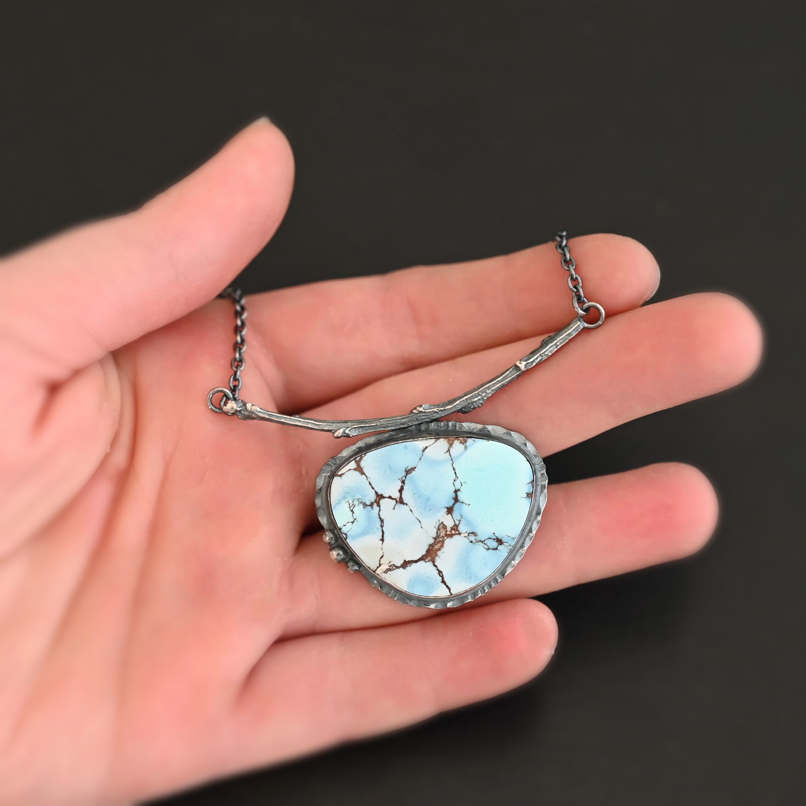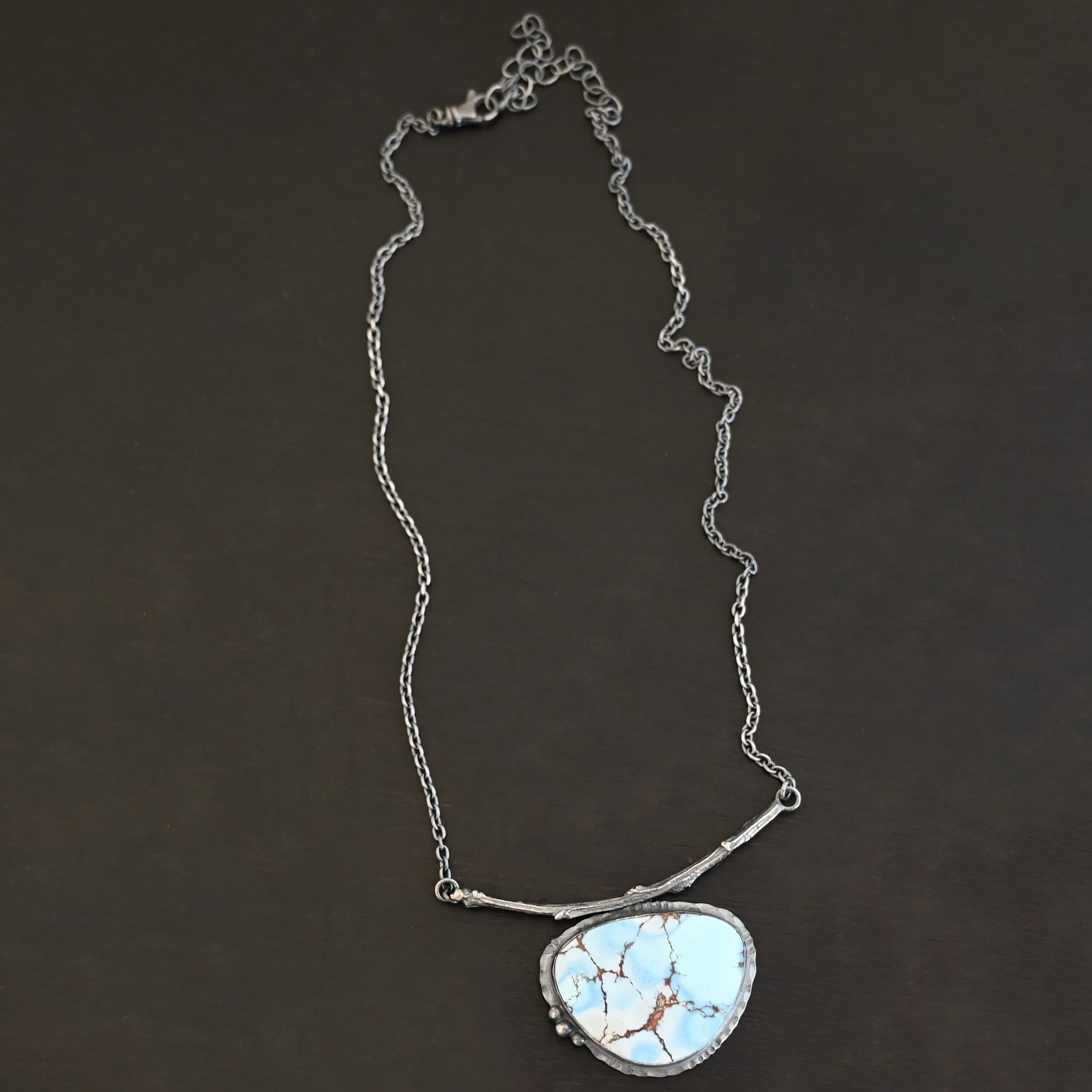 - Comes on handmade sterling silver chain 16-19″ long
